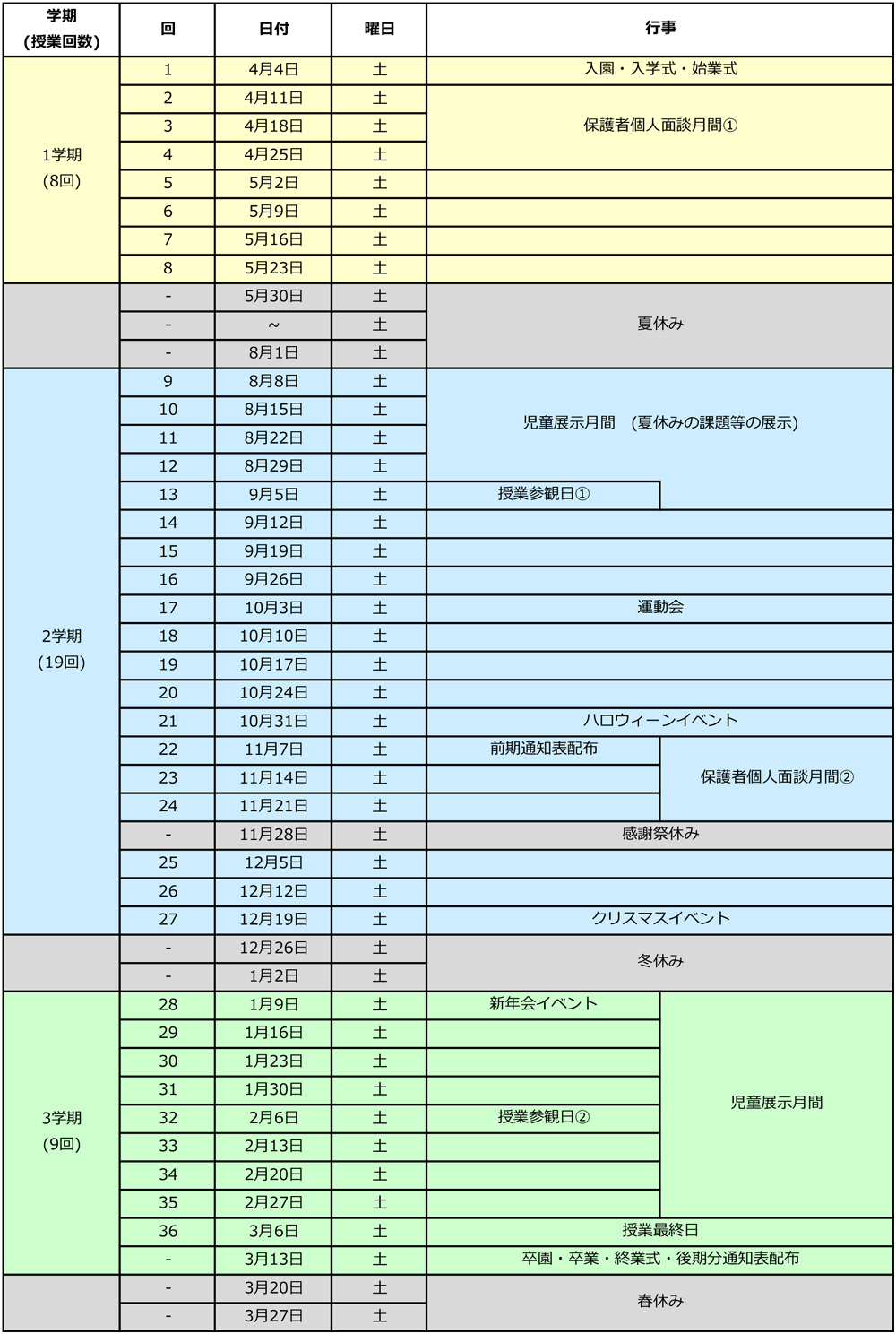 - 学用品について:特に指定の物はありませんのでお子様の使いやすい物をご準備ください。